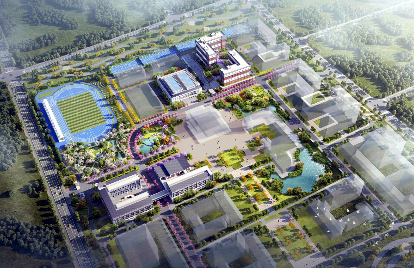 据悉,该项目选址于云南师范大学万溪冲校区内,规划建设内容涵盖4栋单体建筑、1块带看台的标准田径场、18块篮排球场,同时配套建设设备用房、附属用房及校园道路等基础设施,是集教学科研、实验实训、体育运动及食宿为一体的满足教育教学需要的建筑组团。